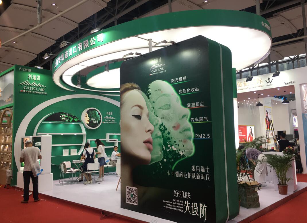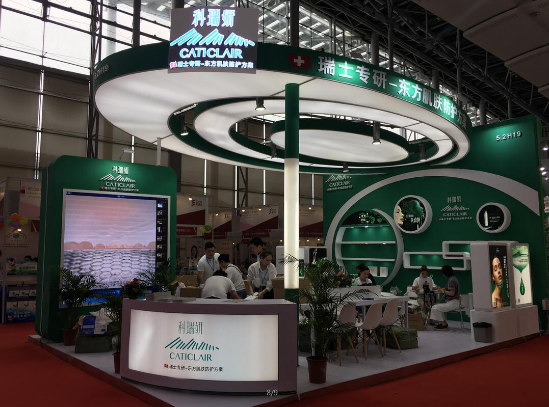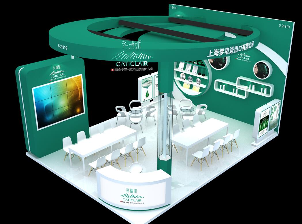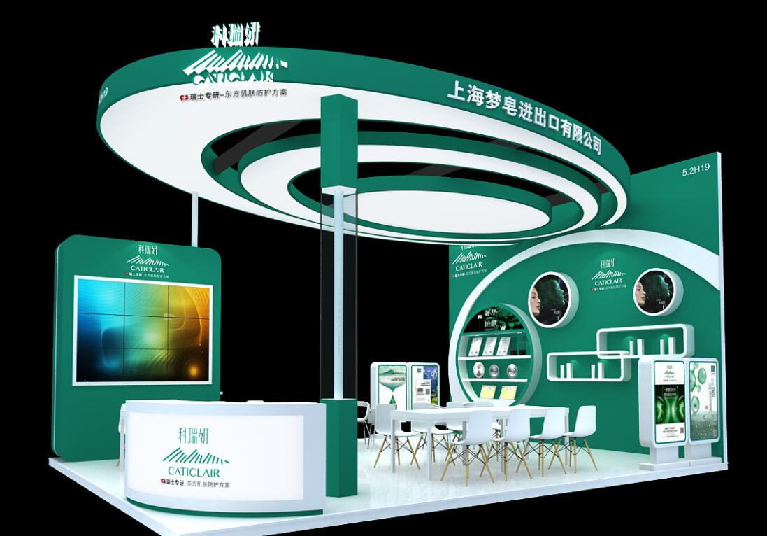 契合上海夢(mèng)皂品牌形象和產(chǎn)品特性,利用天花造型,再搭配燈具燈光的效果,襯托出展位現(xiàn)代、突出一種現(xiàn)代、高端的時(shí)尚品味。